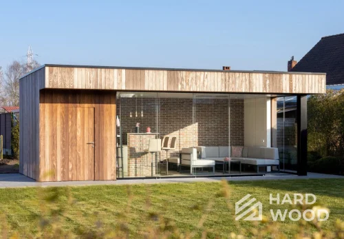 Лофт вырос из индустриальной эстетики: прямые линии, понятный каркас, фактура материалов на первом плане. В беседке это выражается в открытых балках, строгой геометрии, крупном остеклении и функциональности каждой детали. Никакой визуальной «тяжести» — только то, что работает на комфорт и стиль.